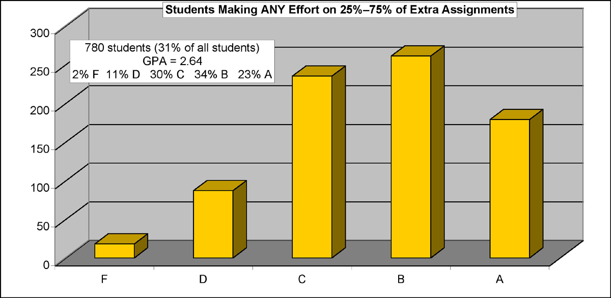 Fair - make a non-zero effort on 25% to 74% of extra assignments
