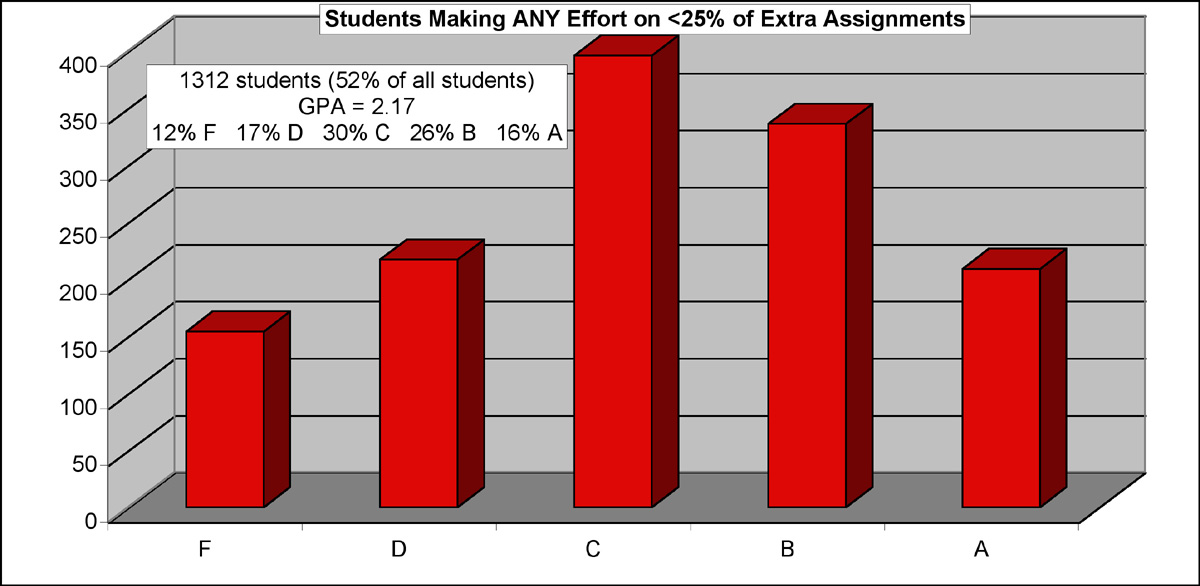 Poor - make a non-zero effort on less than 25% of extra assignments