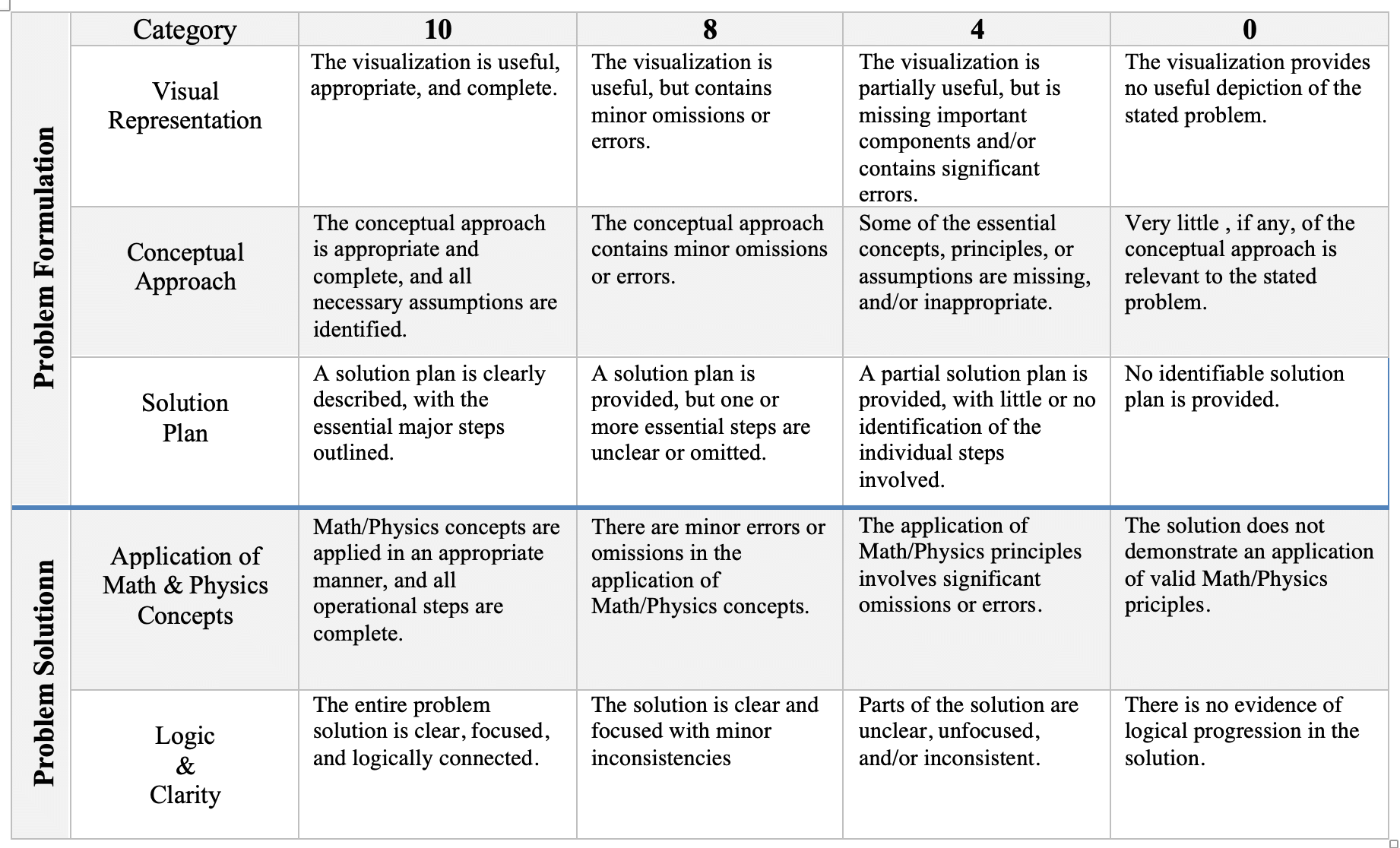 Grading Rubric: Scores in each of the five categories will be assigned by