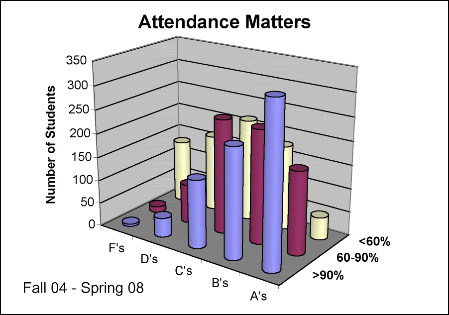You may be interested in the distribution of course grades by class attendance in PHYS 2212