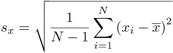 where sx is the standard deviation of the measurements of some quantity x (strictly speaking, the sample standard deviation, as opposed to the population standard deviation), N is the number of measurements taken, xi takes on the value of each individual measurement, and