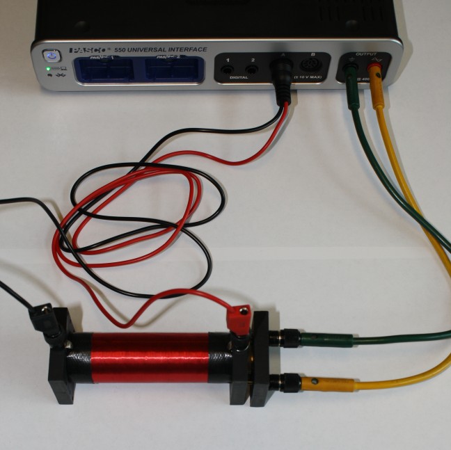 Features: An automated system will supply and record a sinusoidally varying current to the primary coil of an air-core transformer. The system will record the emf induced in the secondary coil. Sine functions will be fit to both the current and emf data so the amplitudes (peak values) may be found.