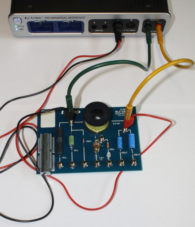 Preliminaries: Build the 8.2 mH inductor circuit. The potential difference is supplied by the "output" sockets, and measured by a voltage sensor